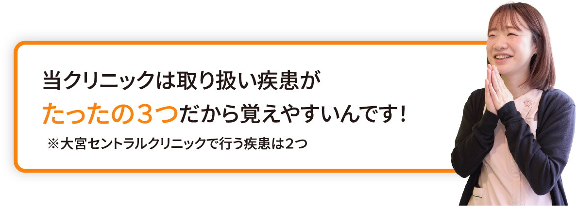 当クリニックは3つの疾患に特化した日帰り手術専門クリニック。